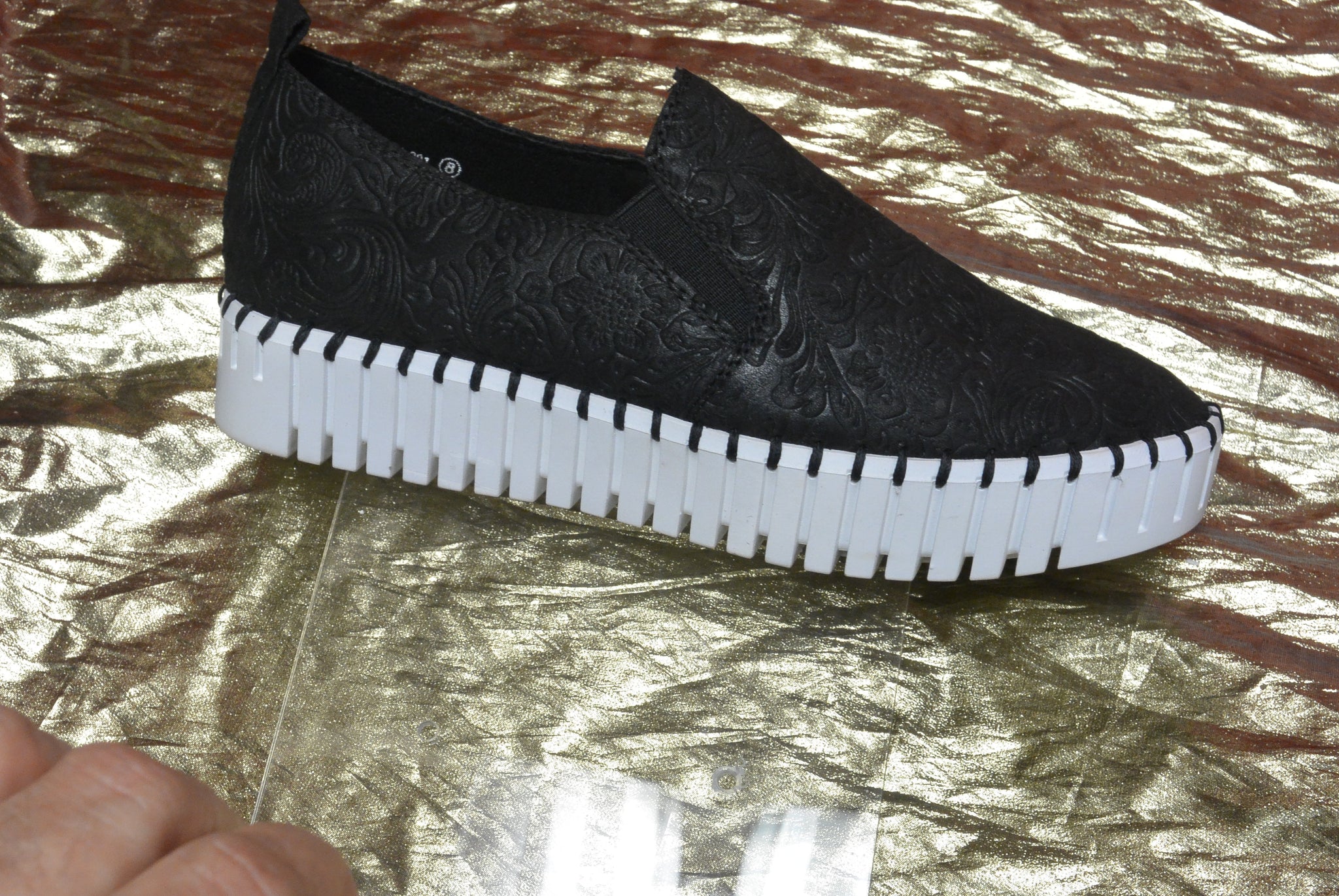 Platform Sneaker ready for a walk or a stroll to the beach or museum... Easy on an off slip on..